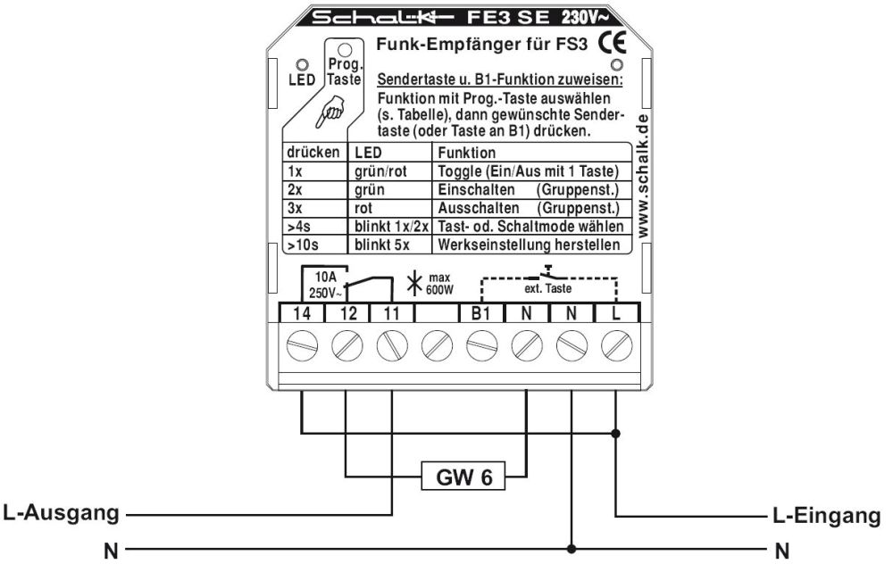 Für eine Funk-Netzfeld-Abschaltung ist somit im einfachsten Fall ein FE3 SE, ein GW 6 und ein beliebiger Funk-(Hand-)Sender aus der FS3-Serie notwendig (siehe Produkte>>Funkschaltsystem).